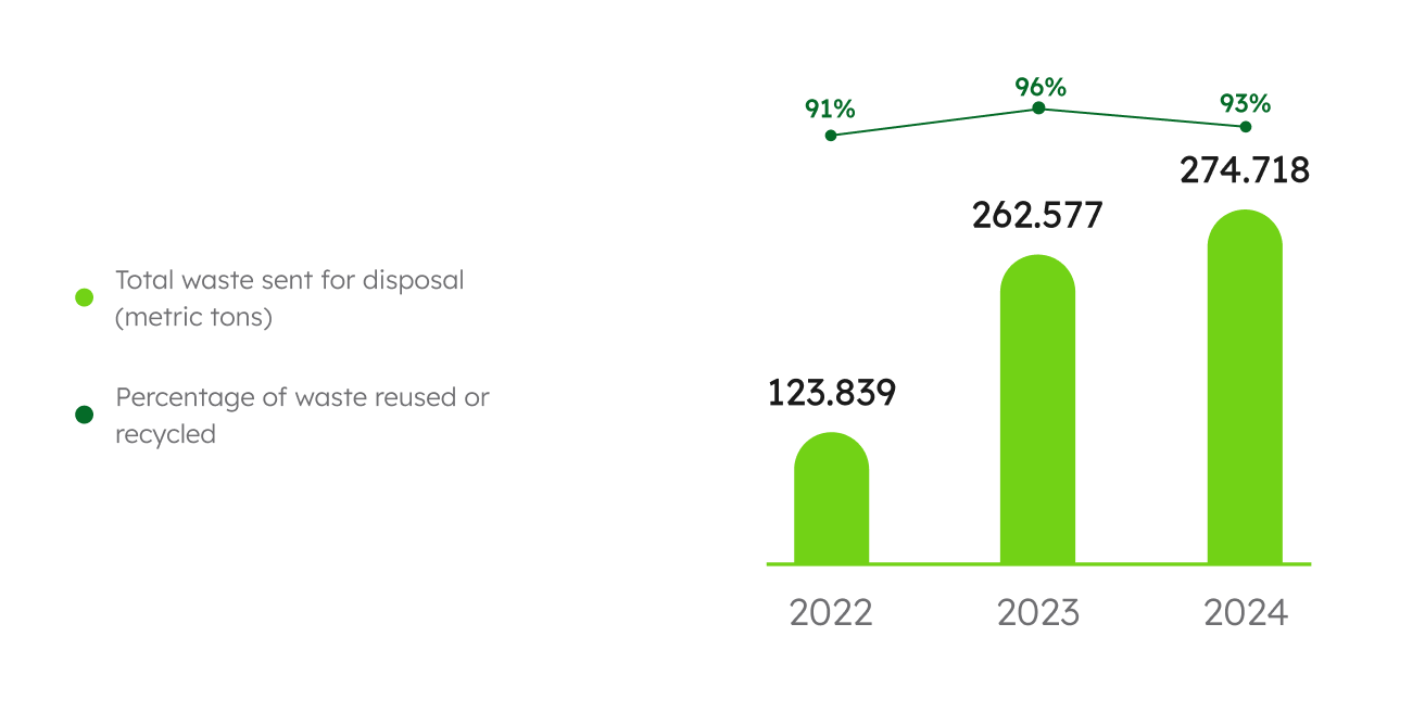 Within the framework of the 2030 ESG Agenda, we are committed to advancing the circular economy, promoting the reuse and recycling of waste, and strategically executing investments in biodiversity